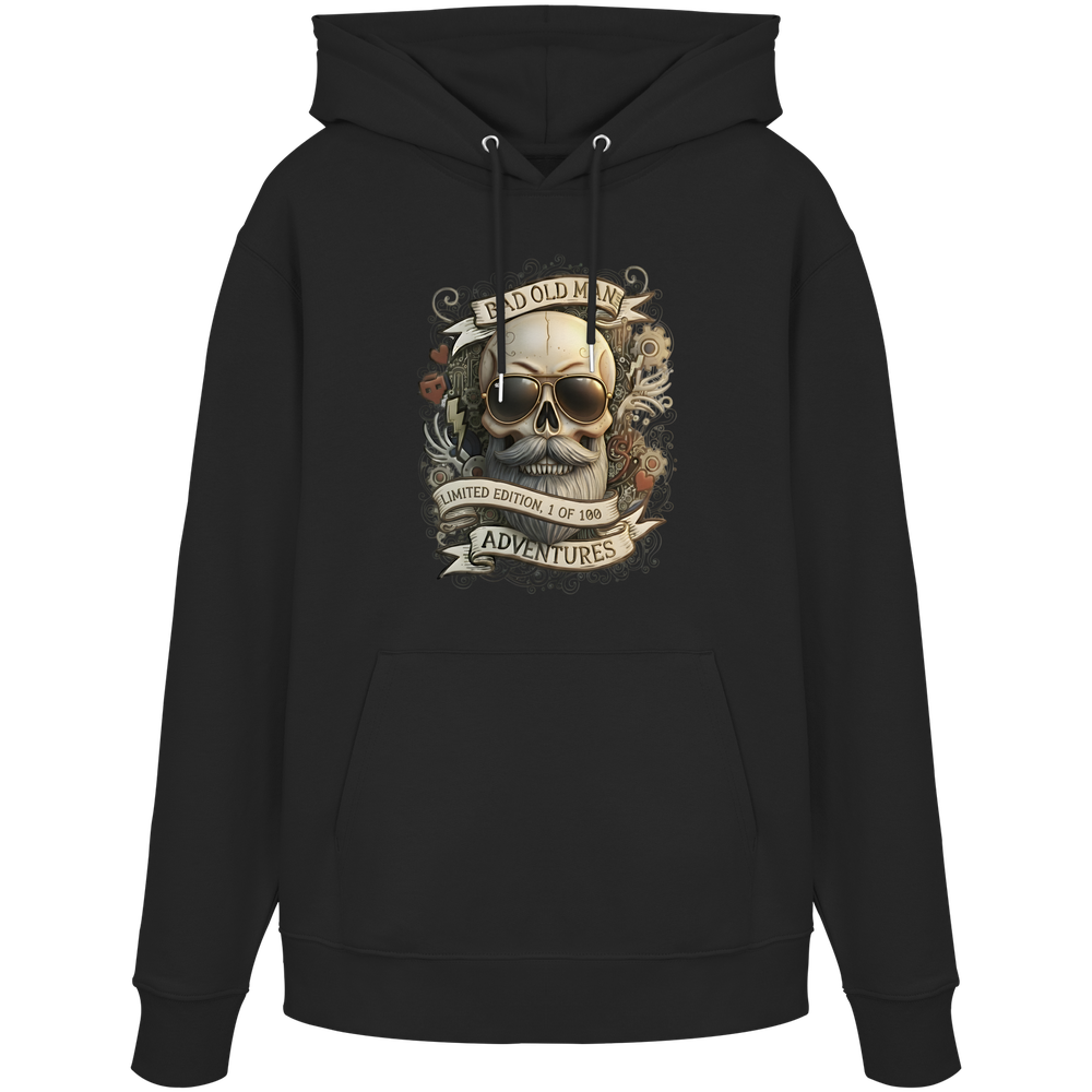 Das ist der Startschuss. Zur Eröffnung von Bad Old Man – Adventures bringen wir unser ikonisches Hauptlogo in einer einmaligen Sonderauflage heraus. Dieses Design wird es in dieser Form nie wieder geben. Wer diesen Hoodie trägt, gehört zu den ersten 100 Unterstützern, die den Spirit unserer Brand von Anfang an mitgeprägt haben.